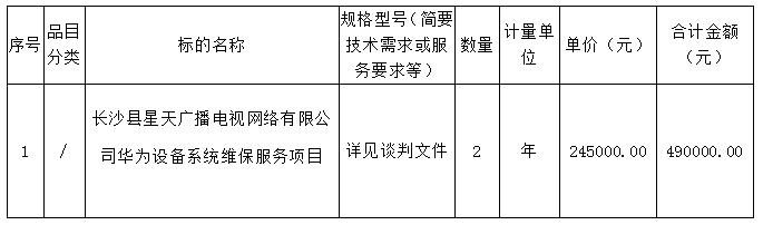 長沙縣星天廣播電視網(wǎng)絡(luò)有限公司華為設(shè)備系統(tǒng)維保服務(wù)項目談判成交公告