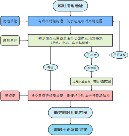 需先確定臨時用地位置及范圍,經自然資源主管部門核查確認后,再開展土地復墾方案編制、臨時用地報批等后續工作,以防止項目開展后出現自然資源主管部門單位審批不通過或不了解項目情況、臨時用地范圍不可行等情況,導致項目停滯及反復溝通等問題。