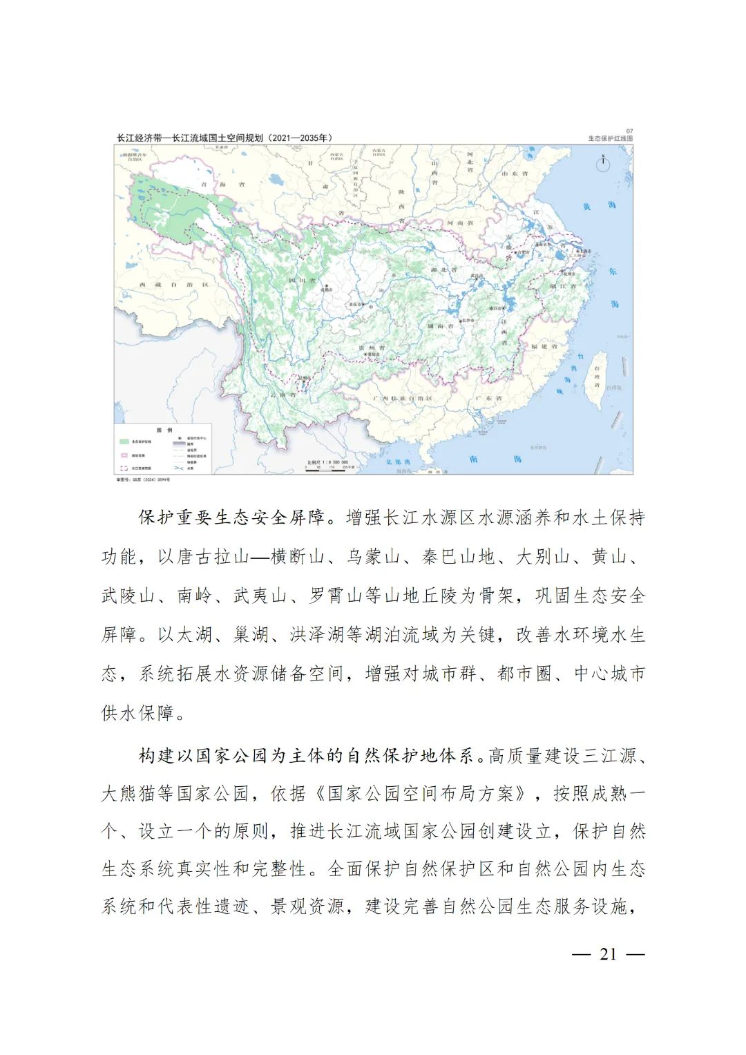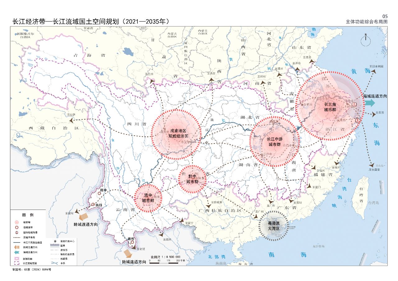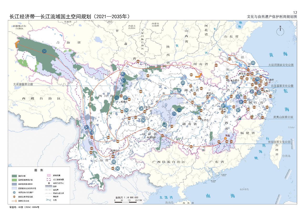 2024年2月9日,《長江經(jīng)濟(jì)帶—長江流域國土空間規(guī)劃(2021—2035年)》經(jīng)國務(wù)院批復(fù)同意。9月10日,自然資源部正式印發(fā)《長江經(jīng)濟(jì)帶—長江流域國土空間規(guī)劃(2021—2035年)》。規(guī)劃范圍包括長江經(jīng)濟(jì)帶11個省(市)全域,以及《長江保護(hù)法》規(guī)定的長江流域其他8省(區(qū)、市)的相關(guān)縣級行政區(qū)域,共計(jì)1173個縣級行政區(qū)域。規(guī)劃范圍包括陸域國土和內(nèi)水、領(lǐng)海。其中,陸域面積240萬平方公里。(后附規(guī)劃范圍詳細(xì)表格)規(guī)劃期限為2021年至2035年。