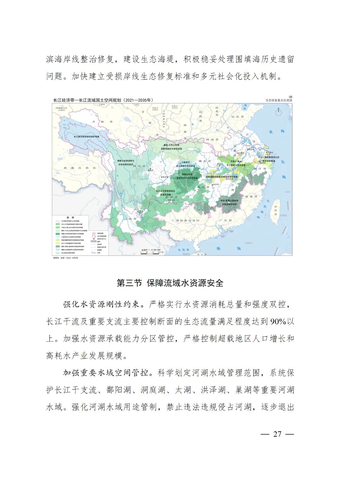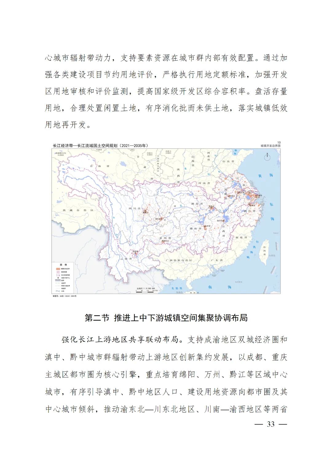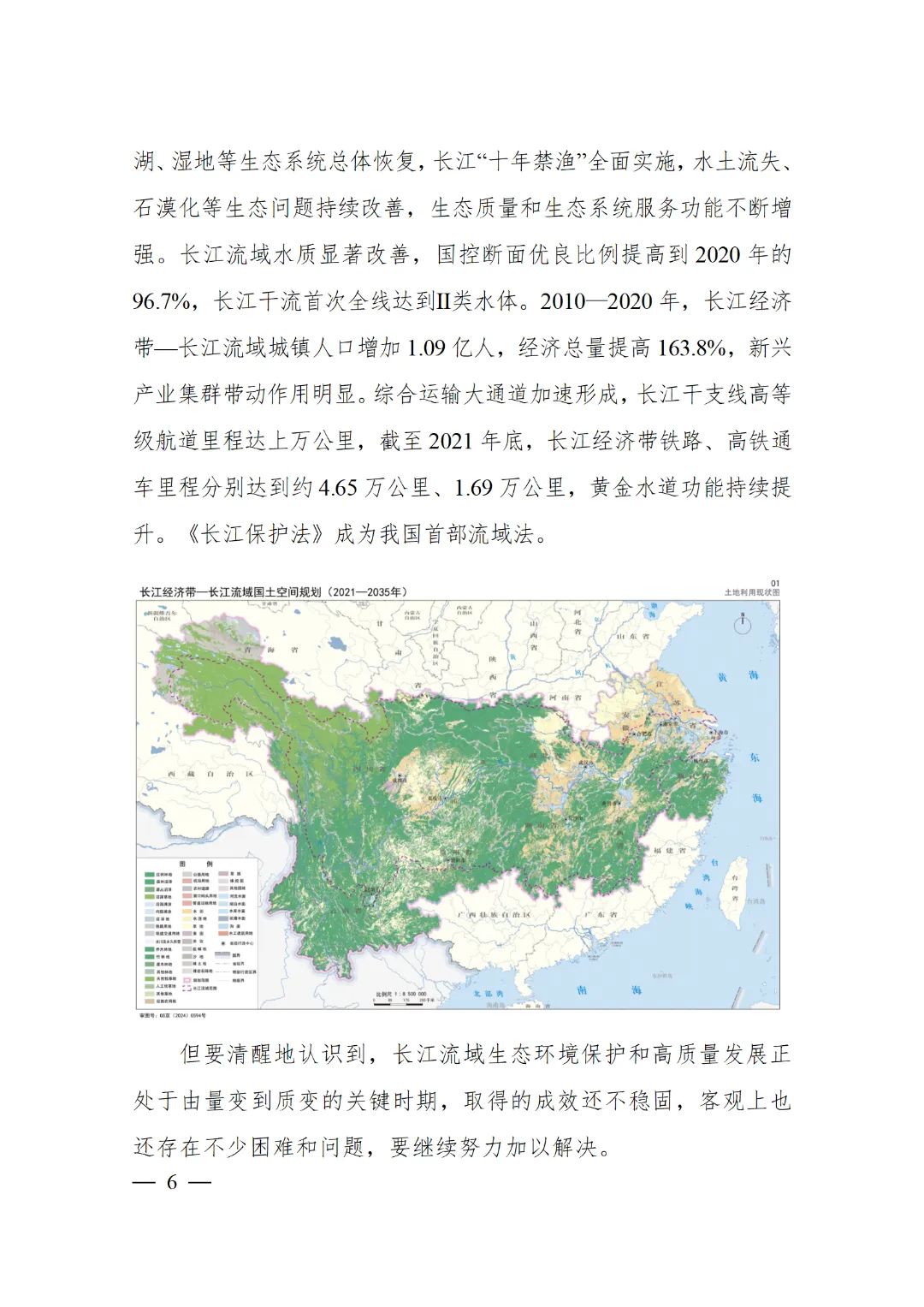 2024年2月9日,《長江經(jīng)濟(jì)帶—長江流域國土空間規(guī)劃(2021—2035年)》經(jīng)國務(wù)院批復(fù)同意。9月10日,自然資源部正式印發(fā)《長江經(jīng)濟(jì)帶—長江流域國土空間規(guī)劃(2021—2035年)》。規(guī)劃范圍包括長江經(jīng)濟(jì)帶11個省(市)全域,以及《長江保護(hù)法》規(guī)定的長江流域其他8省(區(qū)、市)的相關(guān)縣級行政區(qū)域,共計(jì)1173個縣級行政區(qū)域。規(guī)劃范圍包括陸域國土和內(nèi)水、領(lǐng)海。其中,陸域面積240萬平方公里。(后附規(guī)劃范圍詳細(xì)表格)規(guī)劃期限為2021年至2035年。