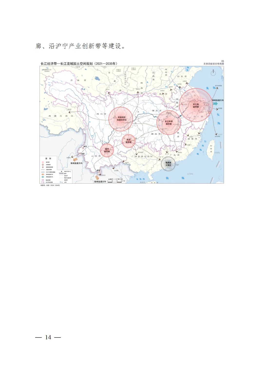 強(qiáng)化長江經(jīng)濟(jì)帶范圍內(nèi)城市群、都市圈和中心城市網(wǎng)絡(luò)聯(lián)結(jié)。支持建設(shè)沿江、呼南等高速鐵路主通道,保障長三角、長江中游、成渝地區(qū)雙城經(jīng)濟(jì)圈與京津冀、珠三角城市群間多徑路的高速鐵路通道空間需求。