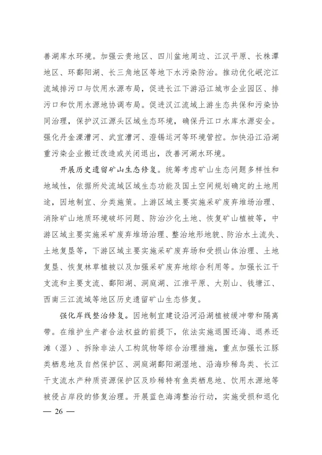 保障戰(zhàn)略性礦產(chǎn)資源開發(fā)空間,加大長江流域能源資源基地和國家規(guī)劃礦區(qū)建設(shè),支持綠色勘查、綠色開發(fā)。