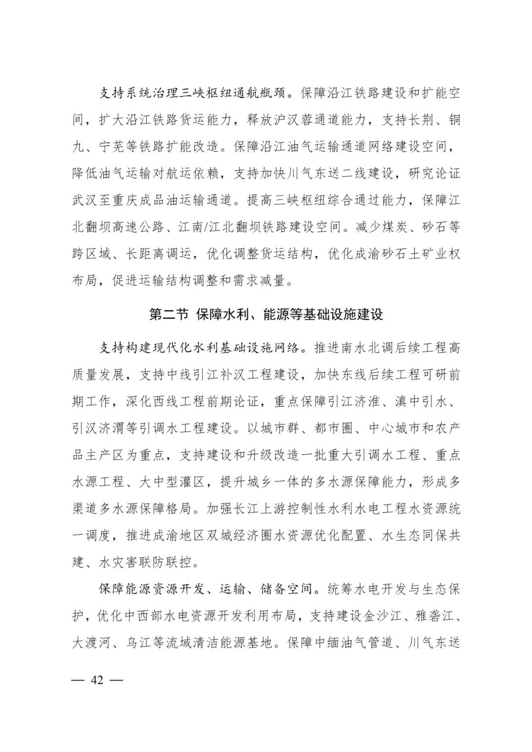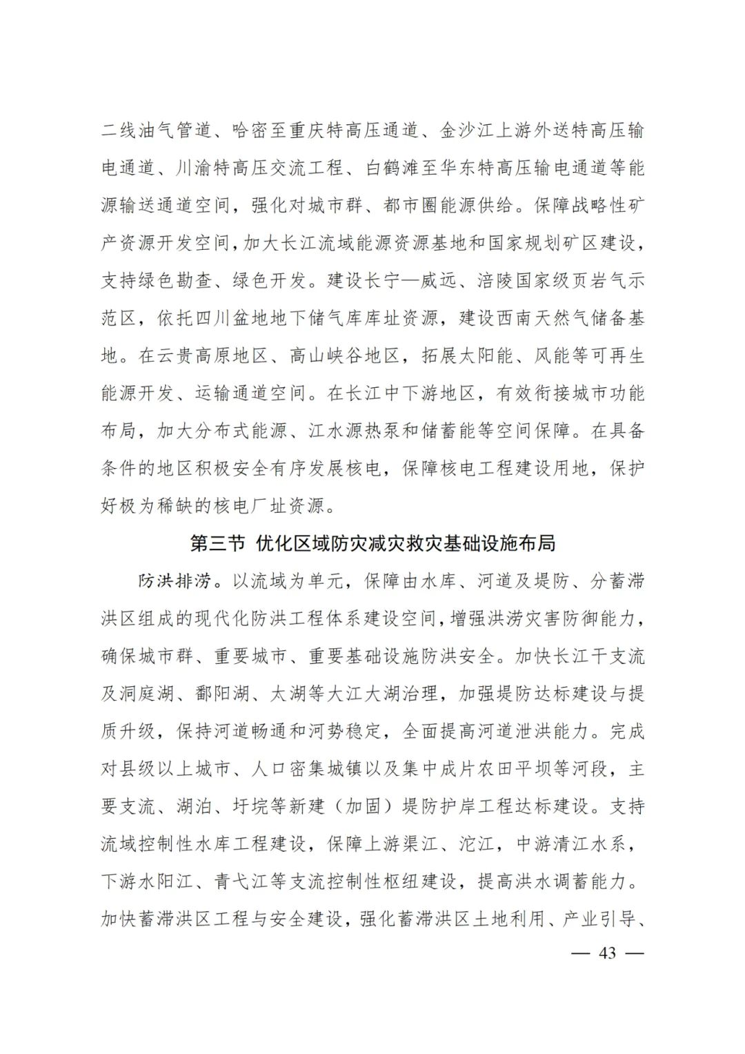 保障中緬油氣管道、川氣東送二線油氣管道、哈密至重慶特高壓通道、金沙江上游外送特高壓輸電通道、川渝特高壓交流工程、白鶴灘至華東特高壓輸電通道等能源輸送通道空間,強(qiáng)化對城市群、都市圈能源供給。
