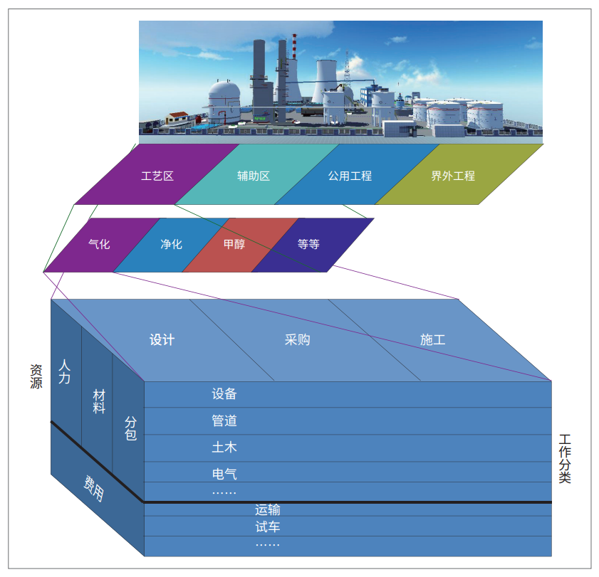 WBS原理:WBS(工作分解結構)是一種基礎性工程數據管理技術,是實施科學、量化的項目控制的一種手段。當項目工作范圍確定后,將項目自上而下進行分解,得到一個樹型的層次結構,這個結構的最底層是眾多的工作項,每一個工作項都是一個可管理的最小單元,這樣就形成了工作分解結構。工程項目WBS:將WBS原理轉化應用于工程建設項目,可根據管理強度需要,對工程工作進行適當分解。準確的WBS,將使龐大復雜的工程項目變得清晰和可控(圖6)。