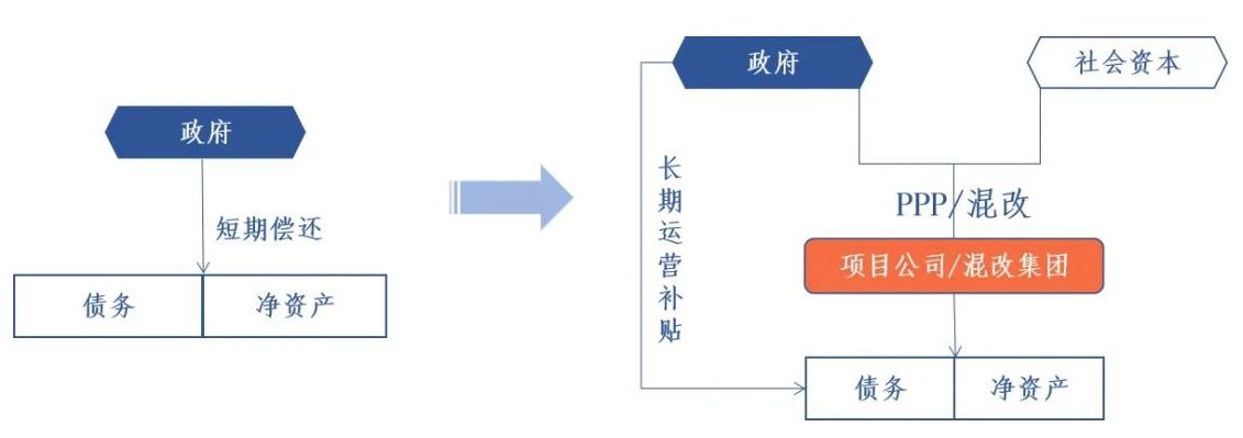 (2)對具備經營條件的政府隱性債務項目,可通過引入社會資本等方式,將其改造為社會資本的債務;