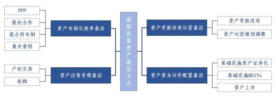 ? 資產市場化效率盤活,是指通過PPP模式、混合所有制改革、股權合作等市場化方式,引入并借助第三方的專業化技術、管理經驗等,提高資產運營效率與質量,進而盤活存量資產。