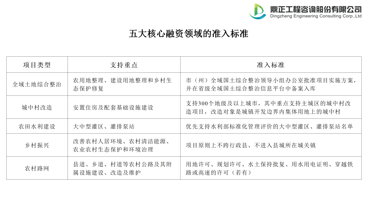 1.五大核心融資領(lǐng)域的準(zhǔn)入標(biāo)準(zhǔn)