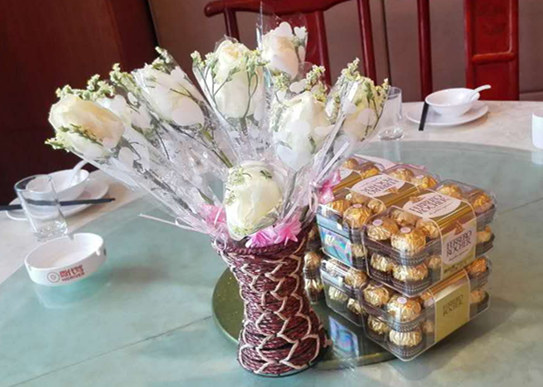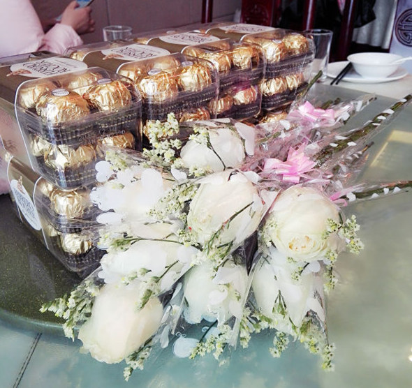 男神們?yōu)榕駛儷I(xiàn)上鮮花和禮物