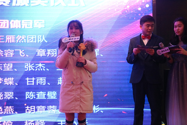 ▲副總毛迎霞為團體冠軍頒獎,胡章蓉代表發言
